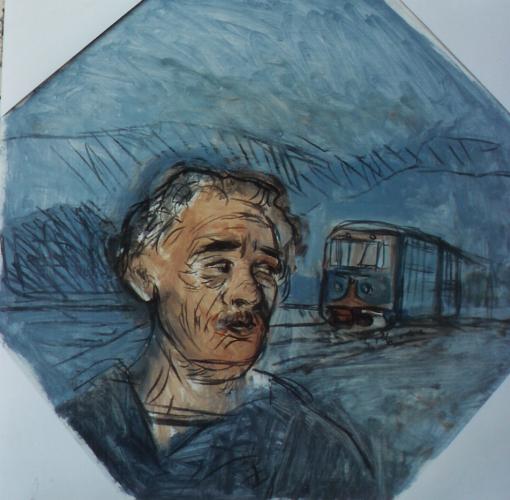 Brandende trein, eerste penseelstreken2009